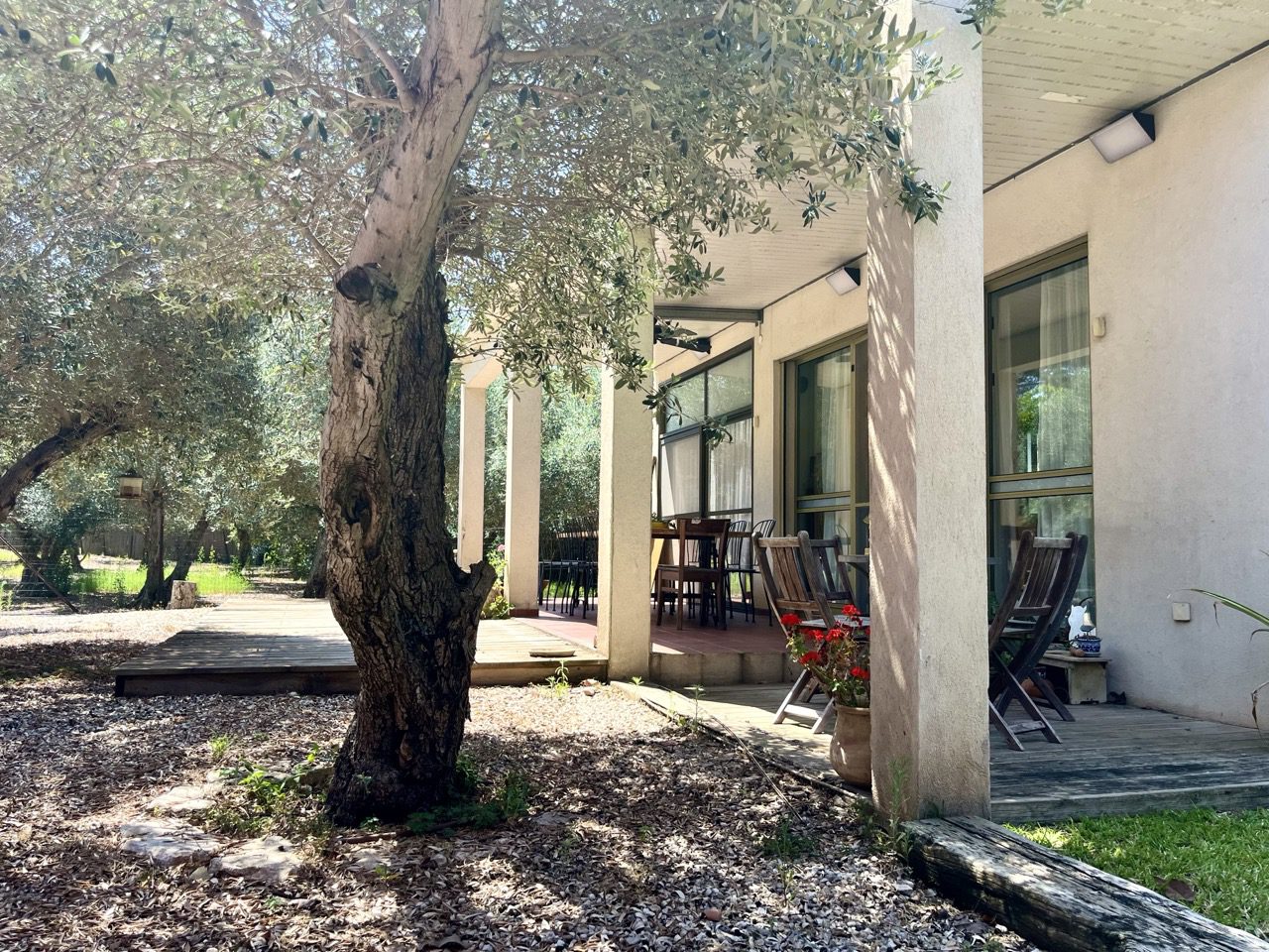 בית עם הרבה פרטיות ואופי ומכיוון שהוא צמוד לשטח ירוק התחושה היא של הרבה יותר מחצי דונם ויותר כמו לגור במטע זיתים וחורש טבעי.